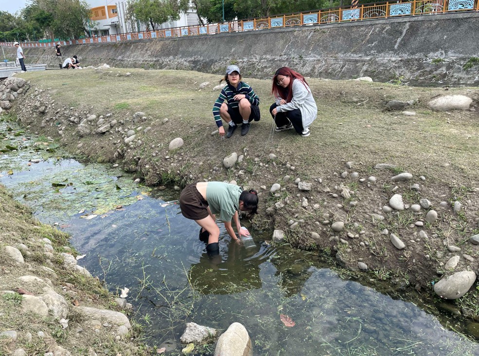 中興生科系鄭任鈞協同主持人帶領〈普通生物學實驗〉學生前往校園南側康堤進行水域生態實作