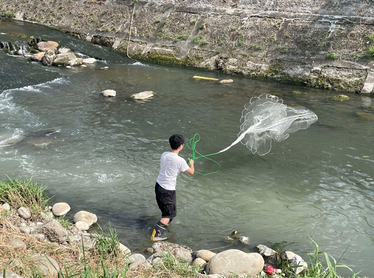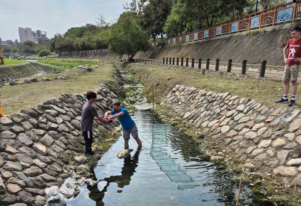 長期以來自然保育被視為高山森林範圍的課題,但近年淺山生態系的重要性日漸成為台灣生態保育的主流觀點,海拔500公尺以下的丘陵、平原、盆地區域,因與人類活動範圍高度重疊,一直以來其生態價值都受人為所忽視,然而卻是超過50%台灣原生物種的主要棲息範圍,因此亟需投入更多關注與實際行動。本計畫以台中都市溪流與排水為主要場域,結合中興、逢甲、中教大組成四校聯盟,各校合作發揮研究所長進行資源共享與共學。中興生科系協同主持人鄭任鈞帶領生科系學生,前往鄰近校園的康堤河段進行水域生態調查,以撒網及放置蛇籠等形式調查棲息物種。此次調查結果魚類方面均為外來種,物種組成單一,但未來只要持續改善水質以及營造棲地,溪流仍有望恢復吸引本土種重新駐足,增益淺山生態系的藍帶功能。